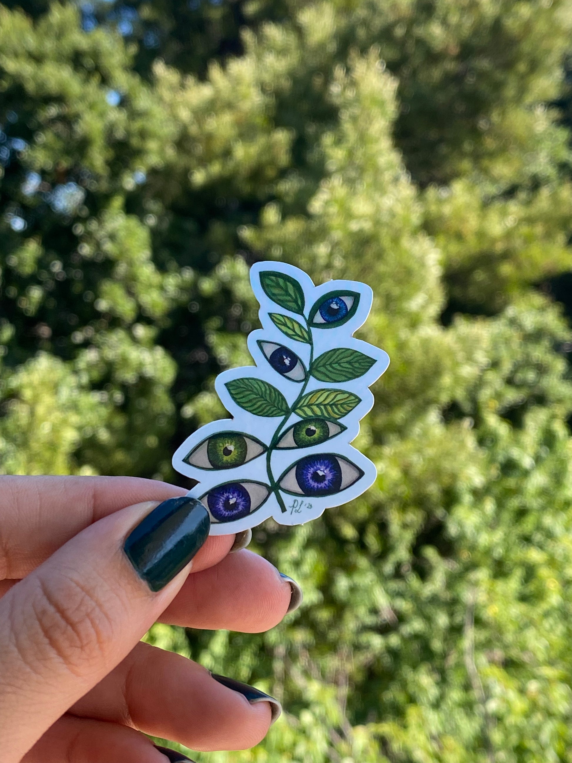 Mini sticker of "Las Ojas de los limones" printed on vynl sticker paper. Sticker is waterproof and meassures about 2.5 inches tall and 2 inches wide.